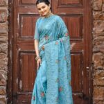 Women’s Elegant Sage Green Georgette Saree with Delicate Floral Embroidery & Sequin Work – Perfect for Summer Festivities & Day Events